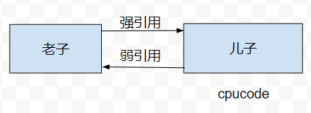 在“父-子”关系中, “父”对象通过强引用计数来引用“子”对象; “子”对象通过弱引用计数来引用“父”对象。