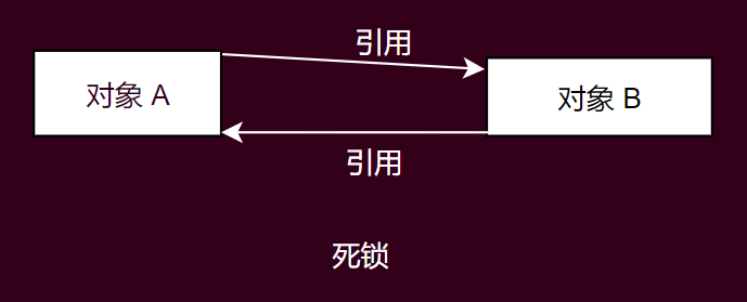 当 有两个对象A和B, 对象A引用了对象B, 而对象B也引用了对象A。 一方面, 当对象A不再使用时, 就可以释放它所占用的内存了, 但是由于对象B仍然在引用着它, 因此, 此时对象A就不能被释放; 另一方面, 当对象B不再使用时, 就可以释放它所占用的内存了, 但是由于对象A仍然在引用着它, 因此, 此时对象B也不能被释放