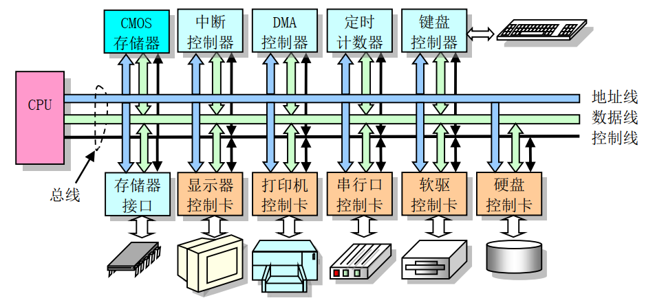 传统 IBM PC 及其兼容计算机的组成框图 :