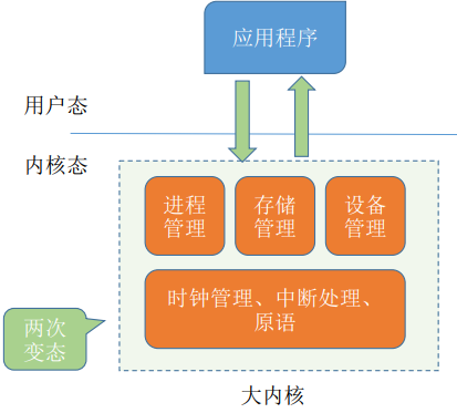 内核程序:操作系统的内核程序是系统的管理者,既可以执行特权指令, 也可以执行非特权指令, 运行在核心态。