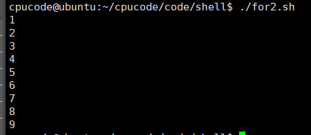 for i in 1 2 3 4 5 6 7 8 9