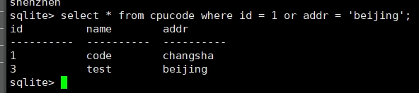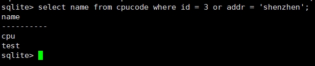 select name from cpucode where id = 3 or addr = 'shenzhen';