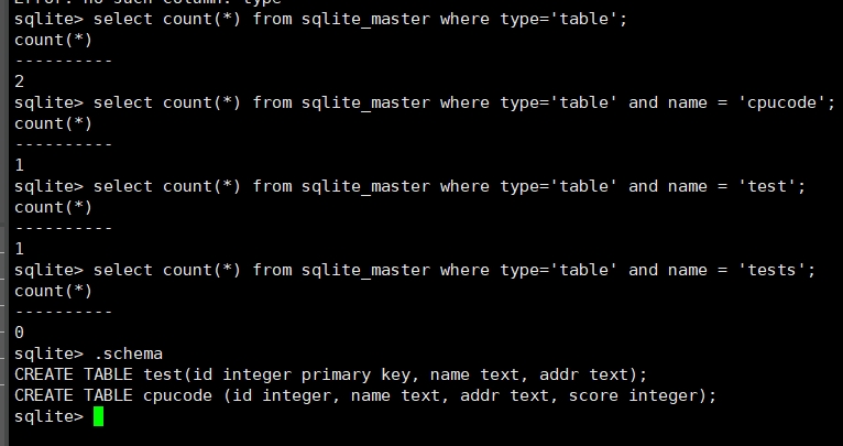select count(*) from sqlite_master where type = 'table' and name = 'cpucode';