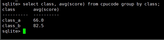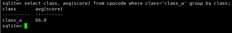 select class, avg(score) from cpucode where class='class_a' group by class;