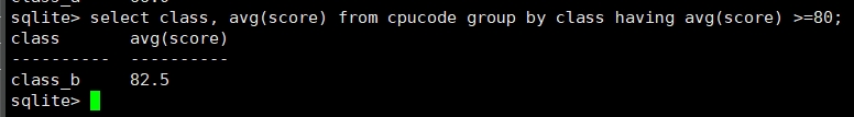 select class, avg(score) from cpucode group by class having avg(score) >=80;