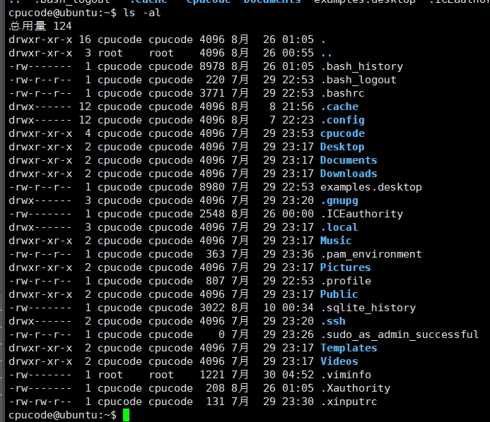 链接到该文件所在的 inode 结点的文件名数目(关于这个概念涉及到 Linux 文件系统的相关概念知识,不在本课程的讨论范围,感兴趣的用户可以查看 硬链接和软链接的联系与区别)。
