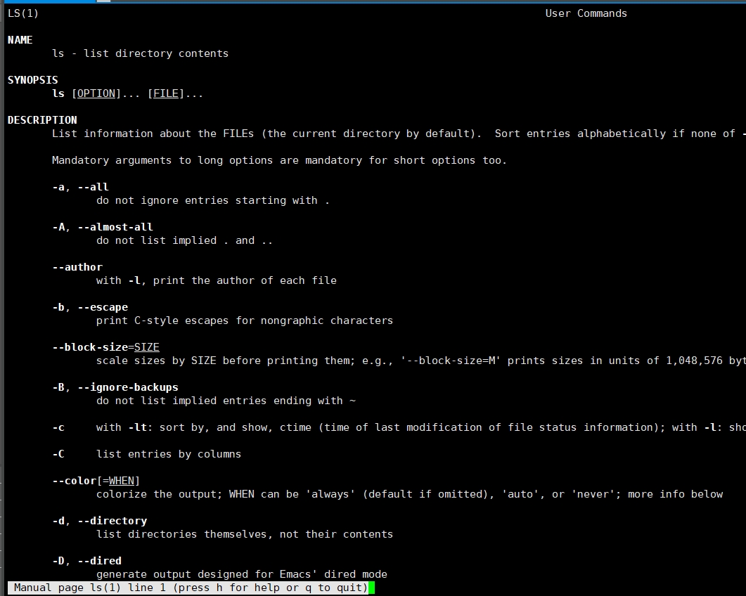 其中小 s 为显示文件大小,大 S 为按文件大小排序,若需要知道如何按其它方式排序,可以使用 man ls
