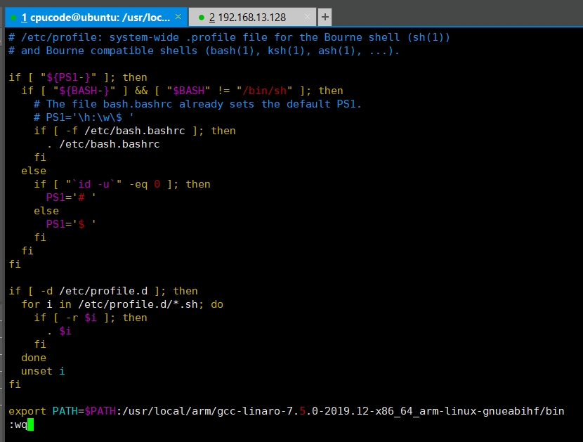 修改环境变量,使用 VIM 打开/etc/profile 文件