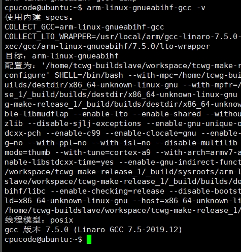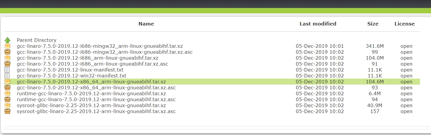 sudo tar -vxf gcc-linaro-7.5.0-2019.12-x86_64_arm-linux-gnueabihf.tar.xz