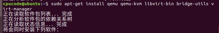 安装kvm加速qemu运行,在终端下执行如下命令: